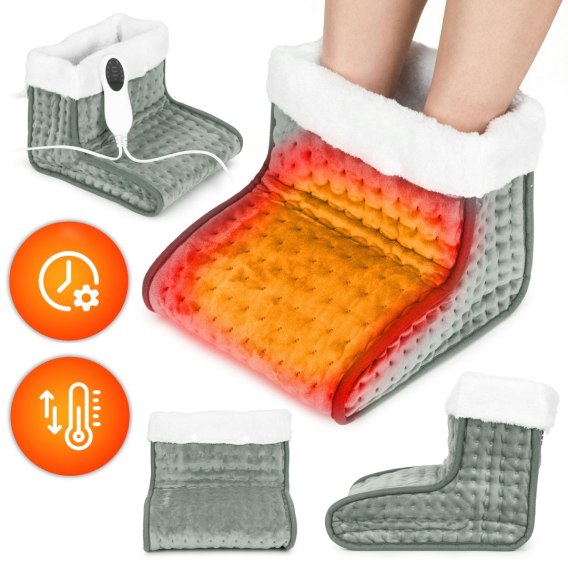 Elektryczny ogrzewacz do stóp z pilotem miękki but 10 poziomów grzania jasnoszary ModernHome