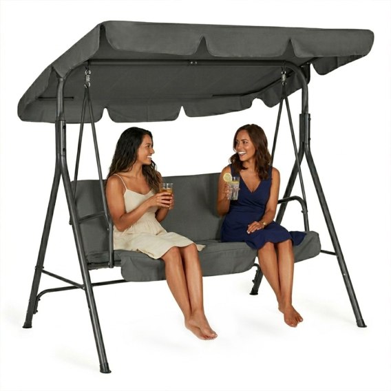 Huśtawka ogrodowa 3-osobowa bujana wolnostojąca stalowa szara MultiGarden