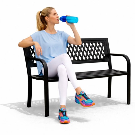 Ławka ogrodowa z ażurowym oparciem 120x50 cm metalowa parkowa czarna MultiGarden
