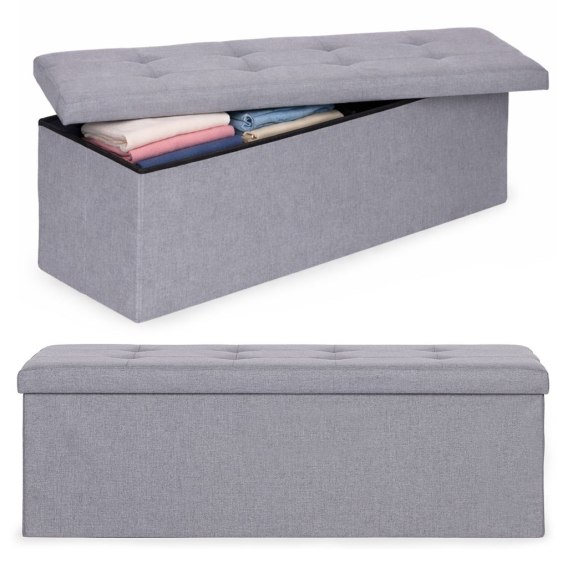 Pufa pikowana 111x38 cm ze schowkiem tapicerowana ława skrzynia jasnoszara ModernHome