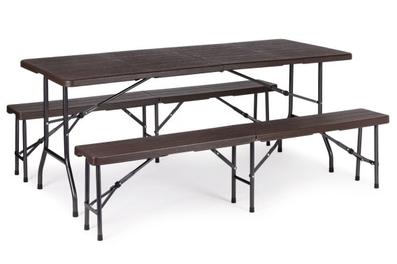 • Zestaw cateringowy stół bankietowy 180 cm + 2 ławki brąz MultiGarden