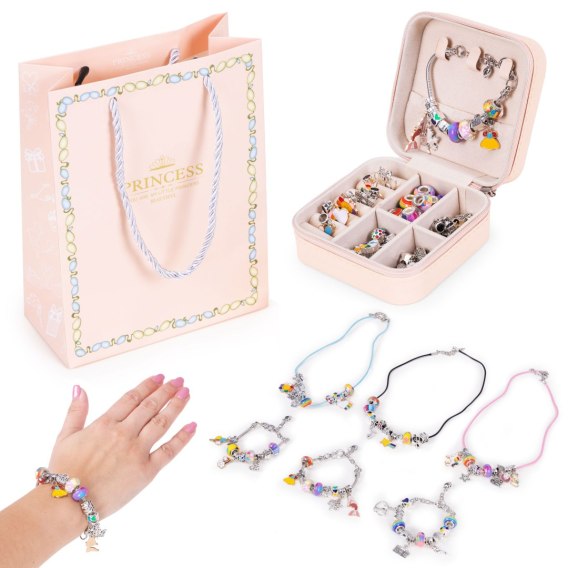• Zestaw do robienia bransoletek naszyjników charmsy koraliki 66 elementów + organizer i torba