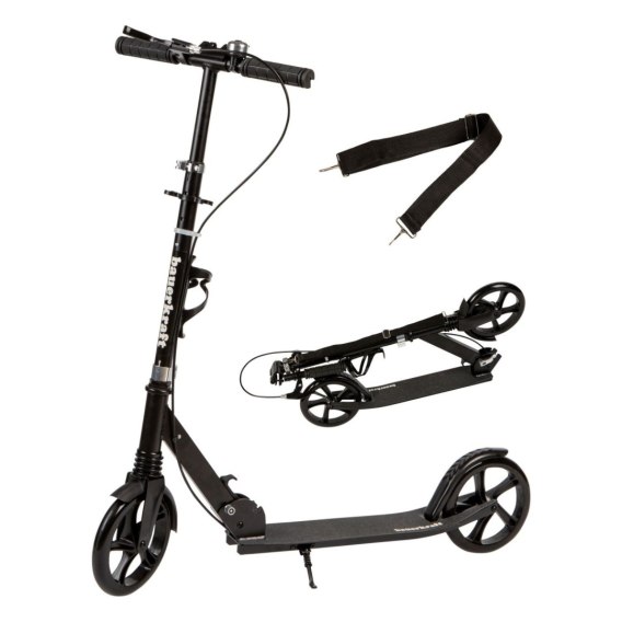 • Praktyczny system składania kierownicy - umożliwia szybkie złożenie hulajnogi do kompaktowych rozmiarów. Stabilne zawiasy i zabezpieczenia zwiększają bezpieczeństwo.